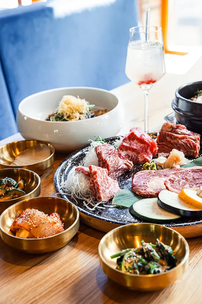 • Short Rib Meat • Flank • Loin Flap Meat • Iberico Secreto Pork • Duroc Nacken Pork • Hähnchenbrust „Gigok“ Eine Auswahl • Kimchi Suppe • Jajjangmyeon mit Gemüse • Bibimbap mit Gemuse